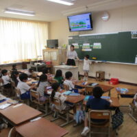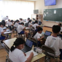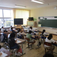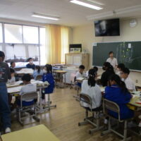 外部から指導の先生方をお迎えし、学校訪問研修会を行いました。ご来校いただいた先生方からは、どのクラスの子供たちも課題解決に向け、真剣に話し合いながら学習に取り組んでいることを褒めていただきました。