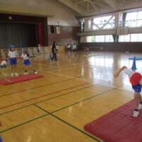 4年生は、マット運動に取り組んでいます。前転、後転、側方倒立回転に挑戦しています。きれいに回れたり、技をつなげたりすることができるように頑張っています。何度も何度もあきらめずに挑戦する姿は大変すばらしいです。技も上手になりました!