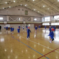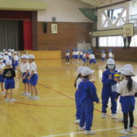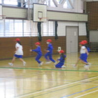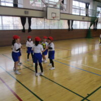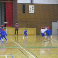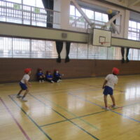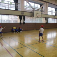 ボールが上手に扱えるように、手渡ししたり、短い距離をパスしたりするなど、競争しながら楽しんで活動しました。先生の指示をしっかりと聞きながら、きびきびと動く様子も見られました。