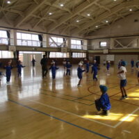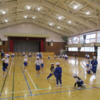 縄跳びをしています。「30秒チャレンジ」では、前まわしとびを時間内に何回できる挑戦しました。90回を目標に頑張っています。いろいろな技や記録に挑戦する楽しさを味わってほしいと思います。