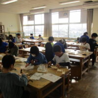 図画工作で、木工作品づくりに挑戦しています。かなづちを使って釘を打ったり、ペンチやくぎ抜きで釘を抜いたりする技能を身に付けていきます。なかなかうまくいかない様子も見られますが、それも経験。安全に気を付けながら、一生懸命に取り組んでいます。