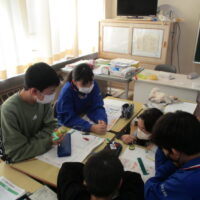 理科「電気と私たちのくらし」の学習をしています。豆電球と発光ダイオードの点灯時間に違いがあるか、実験をしていました。グループで協力して、実験を進めていました。結果をもとに、発電や蓄電、電気の変換について理解を深めていきます。