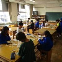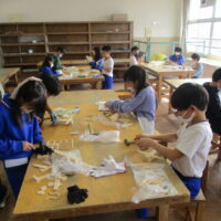 図画工作で、木工作品づくりに挑戦しています。かなづちを使って釘を打ったり、ペンチやくぎ抜きで釘を抜いたりする技能を身に付けていきます。なかなかうまくいかない様子も見られますが、それも経験。安全に気を付けながら、一生懸命に取り組んでいます。
