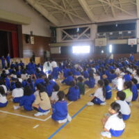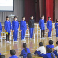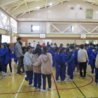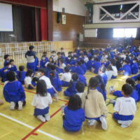 2025.12.2 NEW 全校生 児童集会5 図書・掲示委員会 12月2日 火曜日 今日は、児童集会を行いました。 図書室利用のマナーについて、クイズを通して学びました。また、目標冊数達成者(低学年60冊、中学年50冊、高学年40冊)の紹介があり、その後、各教室で表彰をしました。目標達成者は55人、そのうち17人は100冊以上も本を読んでいます。いろいろな本を読んで、心を豊かにしていきましょう。 そして、仲間づくりゲーム「木こりとりす」をして、全校で楽しみました。