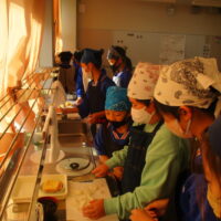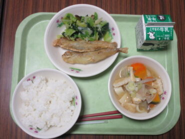 今日は「冬至献立」の日でした。ほうとう鍋(かぼちゃ入り)、ししゃものフリッター、青菜と生しいたけのおひたしです。明日は、みんなが楽しみにしているクリスマス献立です。