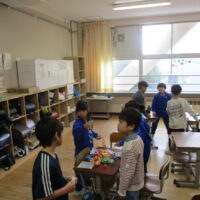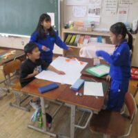 学級のクリスマス集会に向けて、友達と協力して準備をしています。
