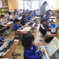 鍵盤ハーモニカの練習に一生懸命に取り組んでいます。