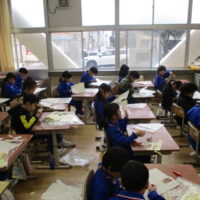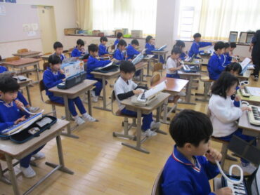 「こぎつね」の学習をしています。指の使い方に気を付けながら、一生懸命に鍵盤ハーモニカの練習に取り組んでいました。