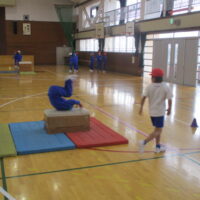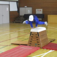 跳び箱運動の学習が進み、開脚とびや台上前転、閉脚とびの技に挑戦しています。自分に合った高さの跳び箱を選び、できるようになるように粘り強く練習に取り組んでいます。