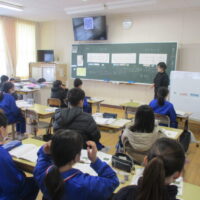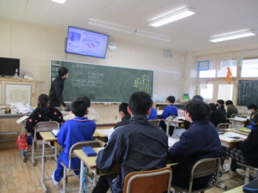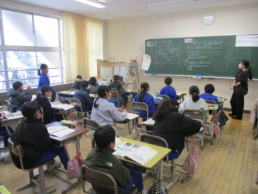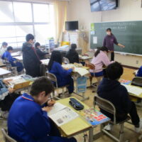 社会科の学習です。戦後改革について調べたことをもとに話し合っていました。