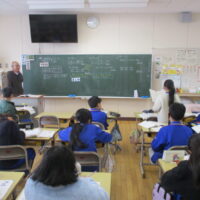 社会科の学習です。戦後改革について調べたことをもとに話し合っていました。