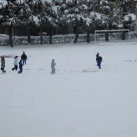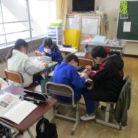 大雪の中、安全に気を付けながら、元気に登校してきた子供たち。登校してすぐに6年生は児童玄関前を除雪してくれました。休み時間には、元気にグラウンドで遊ぶ姿もみられました。
