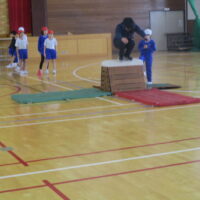 跳び箱の学習です。これまでとは違う技に新たに挑戦する子供たちが増えました。片付けも協力して、素早くできるようになっています。