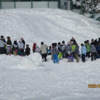 雪がやみ、太陽が顔を出しました。4年生はみんなで雪中活動を楽しみました。
