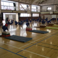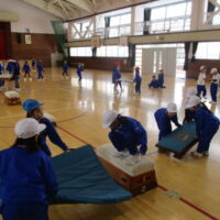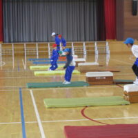 跳び箱あそびをしました。跳び箱を跳び越えたり、上に乗ってジャンプで降りたりしました。くるっと回ったり足を上げたりして、降り方を工夫して、楽しみました。準備や片付けも仲良く協力して取り組みました。