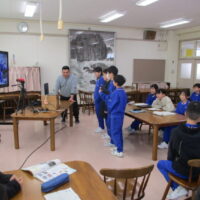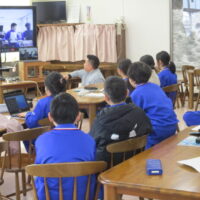 能町小学校の5年生とオンラインでつなぎ、外国語の学習をしました。3限は2組、4限は1組が取り組みました。