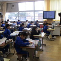国語科の学習です。1組は「お気に入りの場所、教えます」、2組は「伝わる言葉で表そう」です。理由を挙げて説明したり、言葉を広げて表現したりすることについて、考えています。