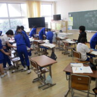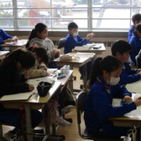 国語科の学習です。1組は「お気に入りの場所、教えます」、2組は「伝わる言葉で表そう」です。理由を挙げて説明したり、言葉を広げて表現したりすることについて、考えています。