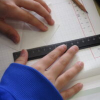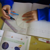 算数科「多角形と円をくわしく調べよう」の学習をしています。今日は、正八角形をつくり、辺の長さや角の大きさを調べていました。