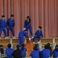 5年生の出し物は劇でした。6年生の思い出をもとにクイズを交えながらユーモラスに演じました。