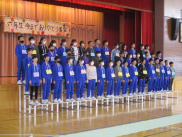 5年生が計画・運営・飾り・出し物等を担い、みんなでつくりあげた集会です。6年生のために、これまで準備や練習をしてきた1~5年生の気持ちが届きました。よく頑張りました。5年生は新しいリーダーとしてやり遂げてくれました。これからもよろしくお願いします。
