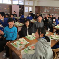 おいしいランチを食べた後は、講師の先生に来ていただき、卒業式で歌う「旅立ちの日に」の指導をしていただきました。今日は、拍を感じながら歌う練習をしました。本番まであと少しになりました。今日の学びを生かして、卒業式には、心のこもった素晴らしい歌声が体育館に響くことを楽しみにしています。