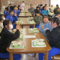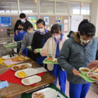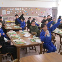 おいしいランチを食べた後は、講師の先生に来ていただき、卒業式で歌う「旅立ちの日に」の指導をしていただきました。今日は、拍を感じながら歌う練習をしました。本番まであと少しになりました。今日の学びを生かして、卒業式には、心のこもった素晴らしい歌声が体育館に響くことを楽しみにしています。