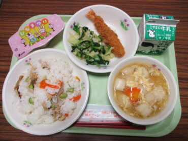 2026.3.3 NEW 1年生 3年生 今日の成美っ子 3月3日 3月3日 火曜日 <1年生> 6年生に感謝のメッセージカードづくりをしました。 思いを込めて文章を書いたり、絵をかいたりするなど、感謝の気持ちが伝わるように一生懸命に取り組んでいました。喜んでもらえるといいですね。 <3年生> 8の字跳びに挑戦しました。間をあけずに連続して跳ぶことができるように真剣に取り組んでいました。これからです! <給食> 今日はひな祭り献立でした。メニューは、はるいろちらしずし、エビフライ、小松菜とキャベツのひたし、かきたま汁、ひなゼリー、牛乳です。
