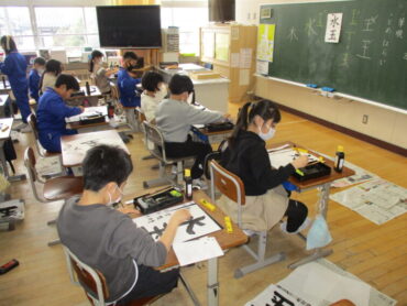 書写の学習をしました。3年生になって初めて学習した毛筆です。最初は「一」からスタートしましたが、今日は「水玉」に挑戦。ずいぶんレベルアップしています。