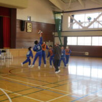 「バスケットボール」の学習をしています。空きスペースに走りこんだり、パスを出したり、好プレーもみられました。