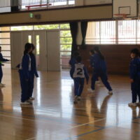 「バスケットボール」の学習をしています。空きスペースに走りこんだり、パスを出したり、好プレーもみられました。