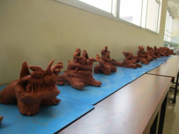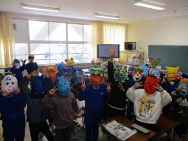 図画工作科「かぶってへんしん」の作品が仕上がりました。へんし~ん!楽しいお面が出来上がりました。口を立体的にしたり、カラフルに飾り付けたりするなど、いろいろな工夫がしてあります。