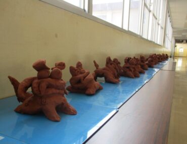 歯や目、口の付け方等を工夫した様々な表情のシーサーが並んでいます。