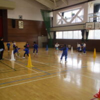 体育科「ドリブルインベーダーゲーム」に挑戦しました。ドリブルをしながら、陣地まで到達すれば、得点が入ります。一生懸命に応援する姿や相手の動きを見ながらタイミングよく走って得点する姿がみられます。